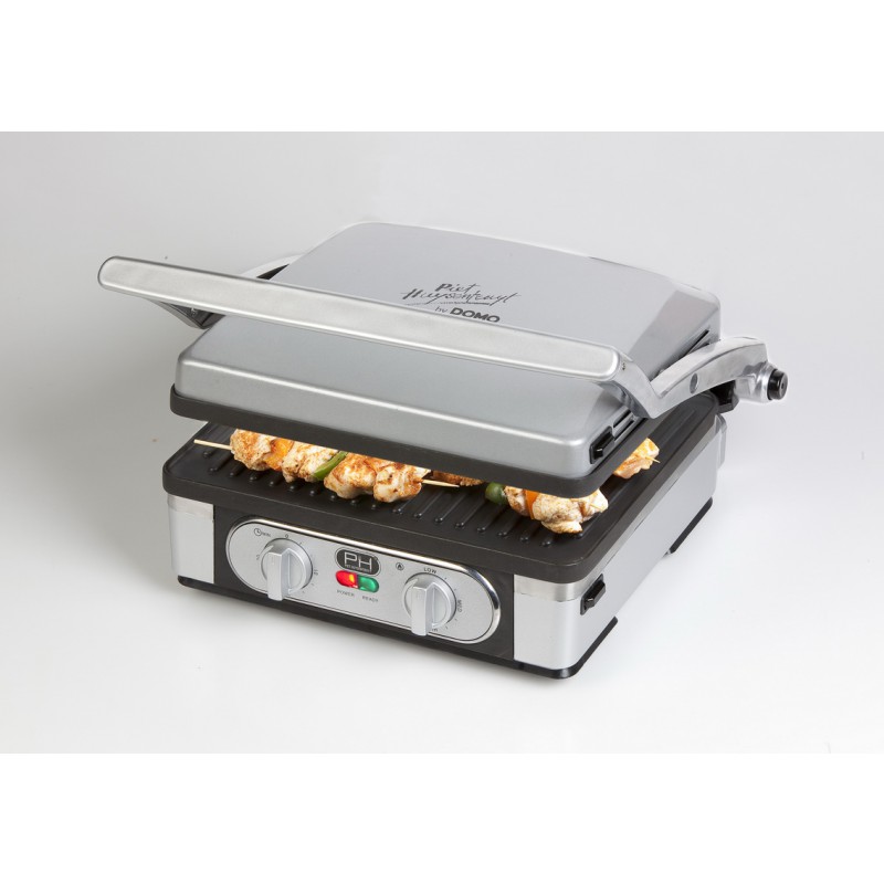 Kontaktní gril od značky Domo Vám pomůže připravit opravdu lahodné pokrmy a to počínaje lehkými snídaněmi a konče stylovými večeřemi z pohodlí domova. Silná topná deska Vám zajistí opravdu vysokou kvalitu přípravy pokrmů se zkrácenou dobou přípravy. Velkým bonusem pro Vás bude odkapávací nádobka na tuk. Navíc má časovač a odnímatelné, nepřilnavé desky, díky kterým je i údržba opravdu snadná. Každý z nás ocení možnost otevření grilu a grilování na obou deskách zároveň. Což Vám umožní opékat jednou tolik jídla než normálně.